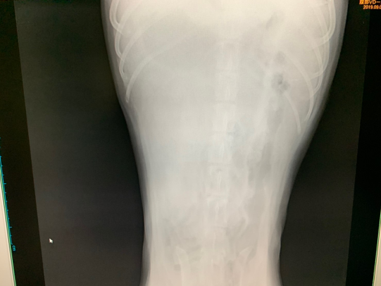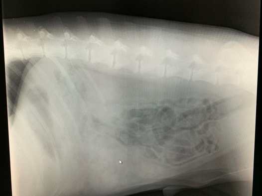 レントゲンで消化管が下腹部によっています。