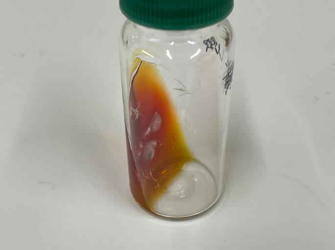 上左写真のような特殊な培地で培養すると、数日で上右写真のように白色コロニー(菌の集 落)と赤色の変化がみられました。