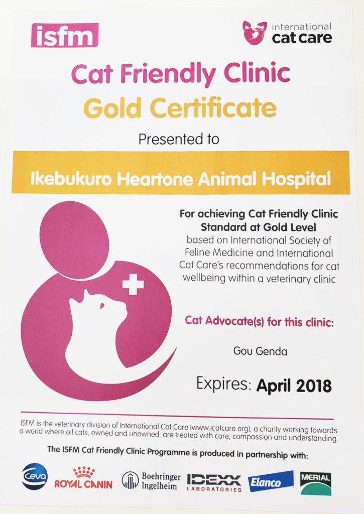 「キャットフレンドリークリニック」ゴールドレベルの認定を受けました。