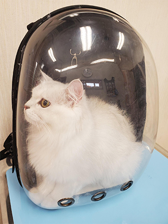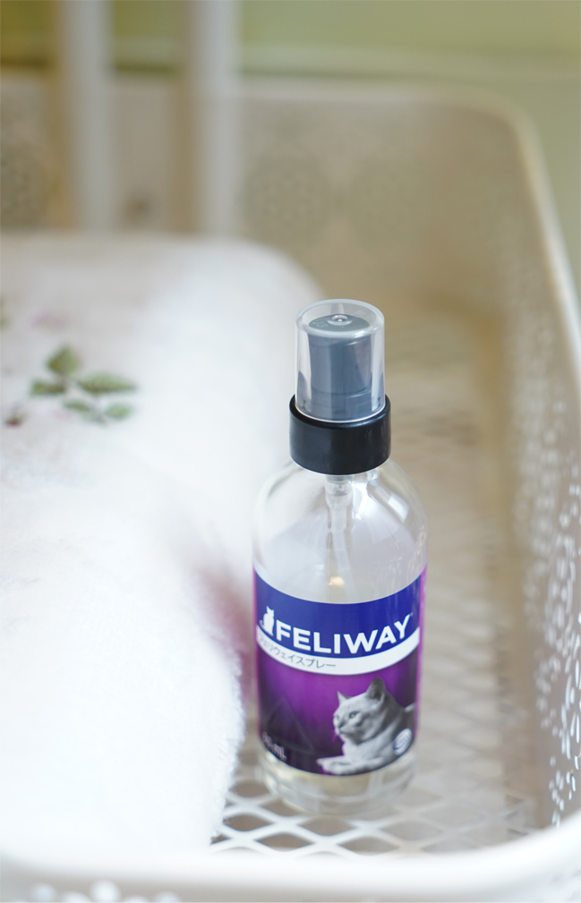 ブランケットにシュッとスプレーして、キャリーバッグを覆っていただくと、猫ちゃんは安心フェロモンの香りに包まれた、大好きなせま~い空間で、快適に待合室での一時を過ごすことができます。