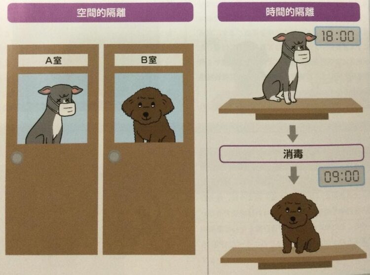 当院では感染源である動物に対する対策として、空間的隔離と時間的隔離を実施しています。